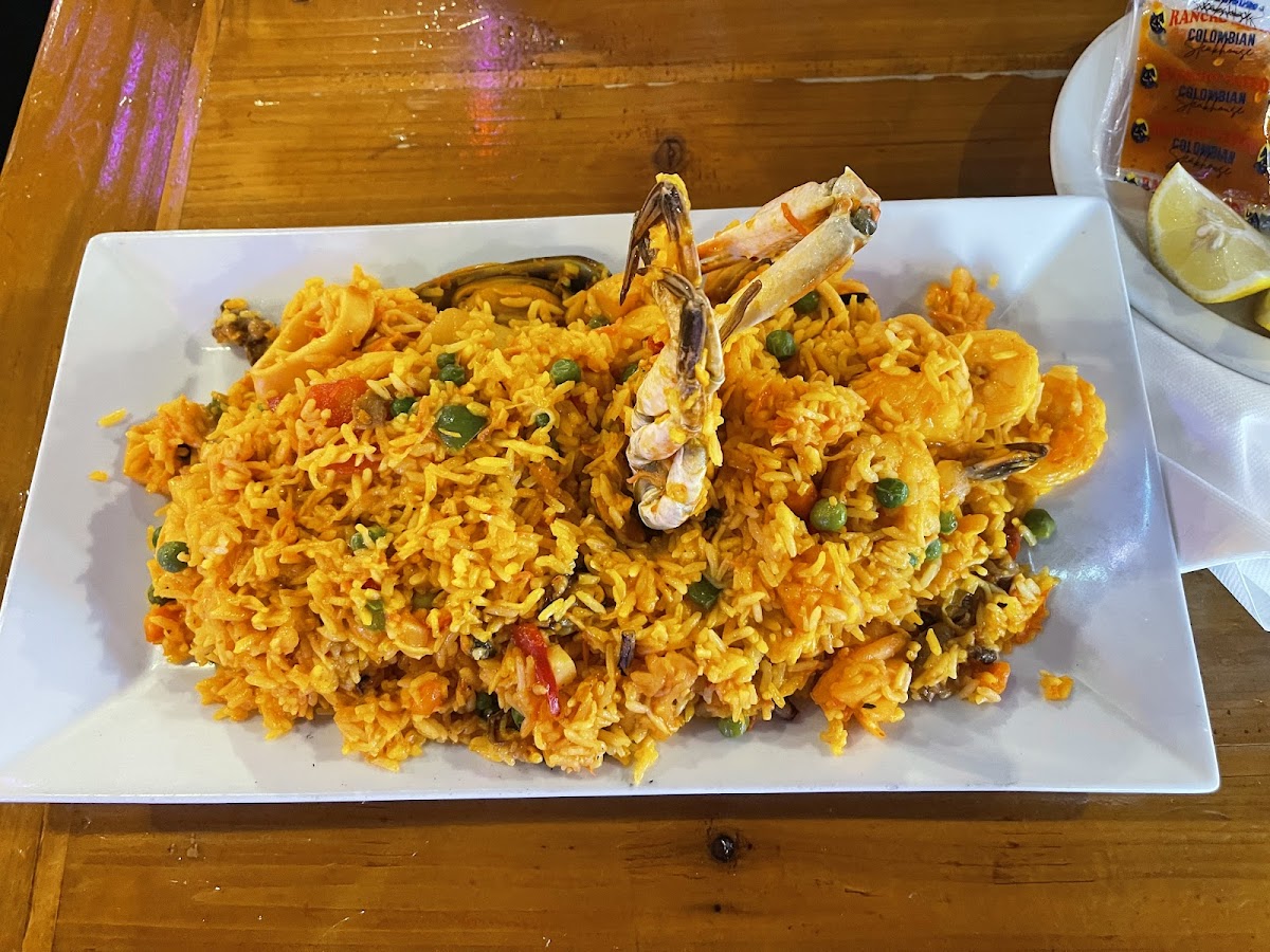 The highlight here is undoubtedly the food. The menu showcases a fantastic array of Colombian cuisine that is sure to tantalize your taste buds. You can’t miss the classic Bandeja Paisa, a hearty platter featuring everything from grilled steak and fried plantains to savory beans and arepas, it’s a celebration of flavors in one dish. For seafood enthusiasts, the Arroz Con Mariscos, a feast of yellow rice brimming with fresh seafood, is a must-try. Another standout is the Camarones Al Ajillo, expertly cooked shrimp in garlic sauce, that brings a delightful kick to your palate.