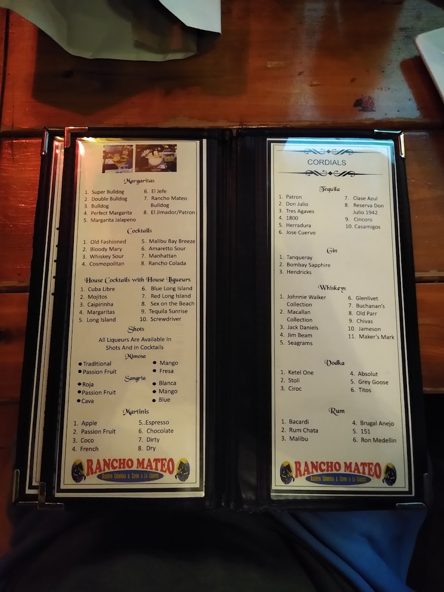 Rancho Mateo Menu